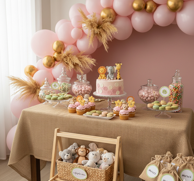 La déco, c'est ce qui fait la magie ! Pour le thème Safari, concentre-toi sur l'effet "waouh" sans te ruiner ni passer des heures.